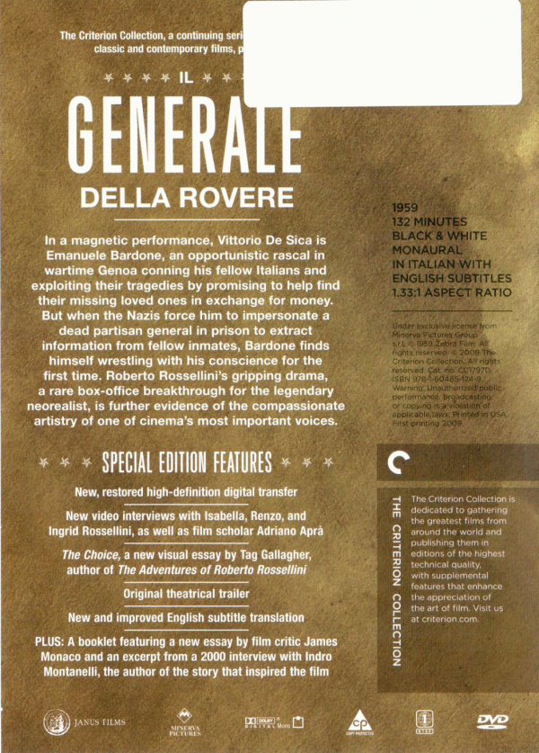 FilmSubtitle language: English Publication details: 1959Description: DVDGenre/Form: Online resources: Summary: Victorio Bardone, a petty con man, is arrested by the Gestapo and coerced into impersonating a partisan leader in order to expose another resistance organizer. Black and White Film.