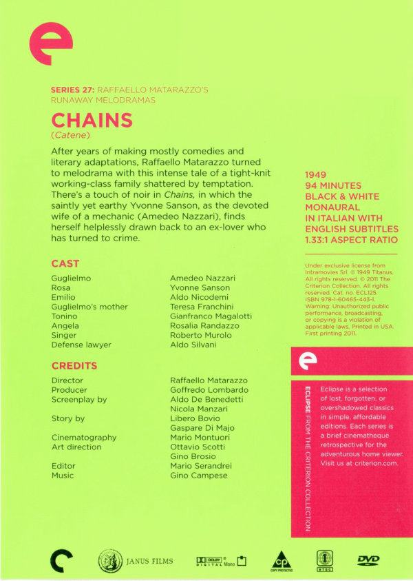 Raffaello Matarazzo’s Runaway Melodramas - Chains, Tormento, Nobody’s Children, The White Angel