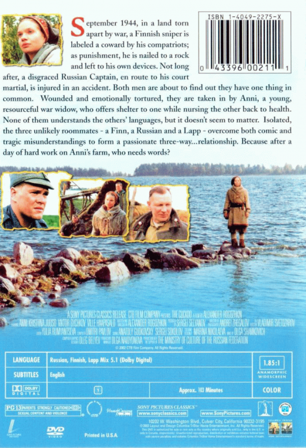 Set in 1944 during World War II, The Cuckoo relates the story of two soldiers — one Russian, the other Finnish — from different sides of the war. Both men escape from captors and take refuge with Annie, a Lapp woman who lives, much as her ancestors have for centuries, tending reindeer, catching fish and concocting age-old recipes (like the blood-and-milk soup she uses to nurse the Russian soldier back to life). No one speaks the other's language, leading to some strange misunderstandings. The men remain enemies, unaware that their countries are no longer fighting each another, since Finland has just withdrawn from the war. On the other hand, Anni can't believe her good fortune. She's been four years without a man — and now she has two!