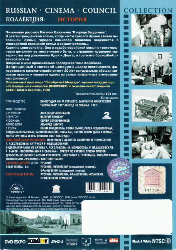 FilmSubtitle language: English Publication details: 1967Description: DVDGenre/Form: Online resources: Summary: Klavdia Vavilova, a Red Army cavalry commissar, is waylaid by an unexpected pregnancy. She stays with a Jewish family to give birth and is softened somewhat by the experience of family life.