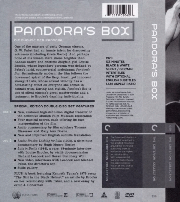 G.W. Pabst's film that catapulted Louise Brooks to international acclaim and made her 'the' icon of the Jazz Age tells the tragic story of Lulu, the hedonistic dancer and prostitute. Based on the plays of F. Wedekind.