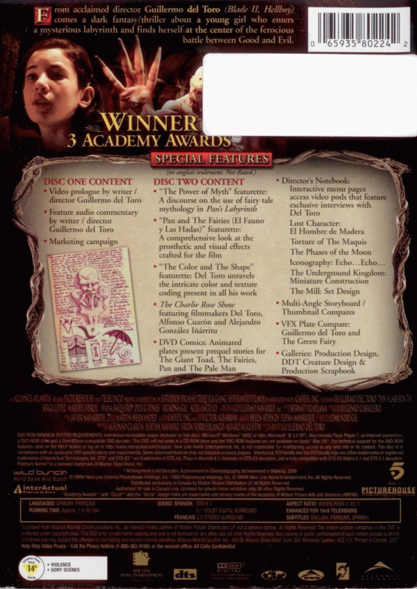 By: Material type: FilmSubtitle language: English, French, Spanish Publication details: 2006Description: DVDGenre/Form: Online resources: Summary: In 1944 fascist Spain, a girl, fascinated with fairy-tales, is sent along with her pregnant mother to live with her new stepfather, a ruthless captain of the Spanish army. During the night, she meets a fairy who takes her to an old faun in the center of the labyrinth. He tells her she's a princess, but must prove her royalty by surviving three gruesome tasks. If she fails, she will never prove herself to be the the true princess and will never see her real father, the king, again.